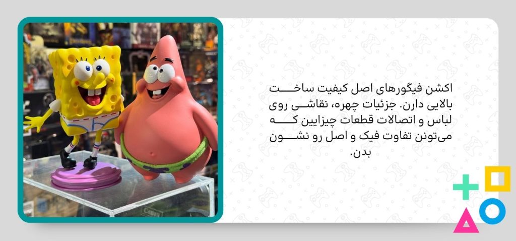 به برند و لوگوی روی فیگور، کیفیت ساخت، رنگ و جزئیات دقت کن. داشتن جعبه اصلی و لوازم جانبی هم نشونه خوبیه. همچنین اتصالات سالم و نداشتن خطوخش زیاد، از نشونههای کیفیت بالاست. اگر مطمئن نیستی، تو گروههای تخصصی از بقیه کمک بگیر.