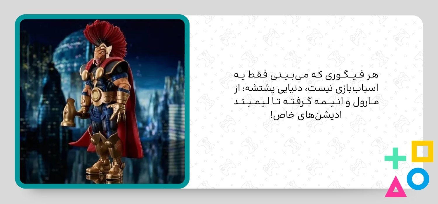 اینجا دقیقاً همون نقطهایه که سرمایهگذاری میتونه جواب بده. چه برای کلکسیونرهایی که میخوان الان فیگورای خاص بخرن و بعدها با ارزش بالاتر بفروشن، چه برای کسبوکارهایی که قصد دارن وارد این حوزه بشن. با رشد فرهنگ کلکسیونرها، بازار ایران میتونه به یکی از بازیگرای جدی منطقه توی حوزه اکشن فیگور تبدیل بشه.