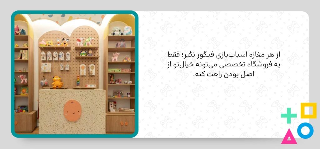 چون فروشگاههای عمومی فقط تعداد محدودی فیگور دارن و معمولاً روی اصالت کالا حساسیت زیادی نشون نمیدن. در حالی که فروشگاه تخصصی هم تنوع بالایی داره (مارول، انیمه، گیم و…) و هم تضمین اصالت و خدمات پس از فروش ارائه میکنه.