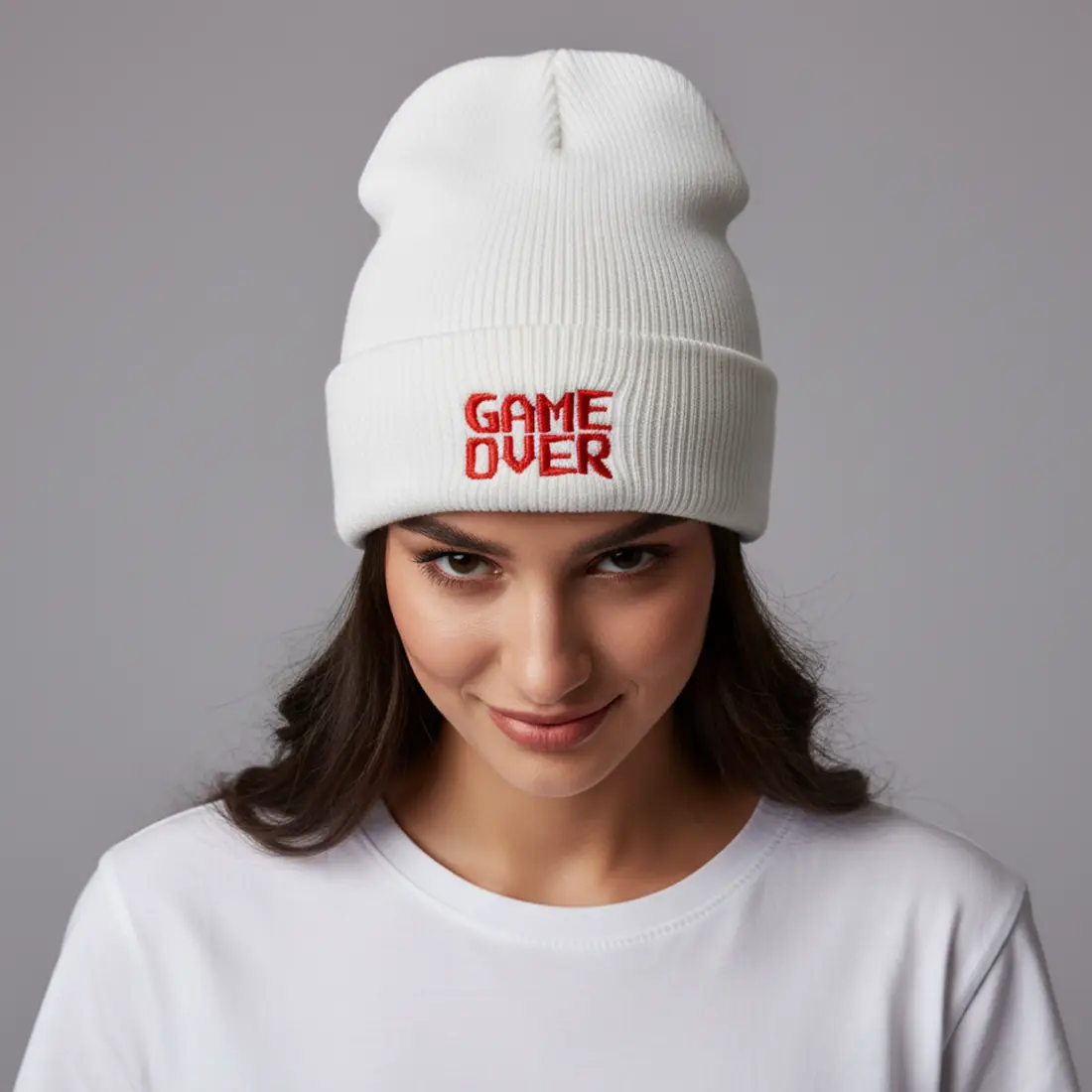 کلاه بافت گلدوزی گیم اور سفید Game Over